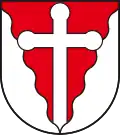 Blasonierung: „In Silber eine gestürzte rote Wellenspitze, daraus wachsend ein silbernes Kreuz mit scheibenförmigen Enden.“[9] |