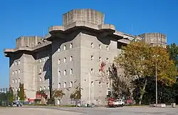 Für die Flakartillerie der Luftwaffe wurden 1942 auf der westlichen Seite zwei Flaktürme gebaut; ein größerer Hochbunker (Gefechts- bzw. G-Turm) an der Feldstraße und südlich davon der kleinere Leitturm (L-Turm) an der Eimsbütteler Straße. Diese trug ab 1946 den Namen Ernst-Thälmann-Straße, bis sie nach dem Ungarischen Volksaufstand 1956 in Budapester Straße umbenannt wurde.