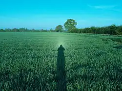 Der Heiligenschein ist eine optische Erscheinung, die als eine Aufhellung um den Schatten des Beobachters zu sehen ist. Sofern sich der Beobachter bewegt, wandert der Heiligenschein mit.