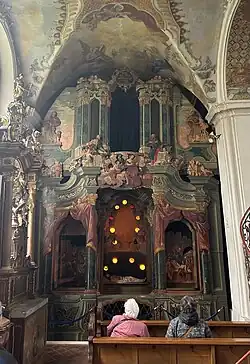 Wasserburg am Inn: In der Frauenkirche in Wasserburg wurde dort erstmals in der Fasten- und Osterzeit 2025 ein monumentales Heiliges Grab aufgestellt. Es stammt ursprünglich nicht aus Wasserburg, sondern aus der Klosterkirche Frauenchiemsee. Im Jahr 1977 wurde auf dem Speicher der Kirche in Frauenchiemsee eine Heilig-Grab-Kulisse von beachtlichem Zustand und Größe gefunden. Der seit 1752 auf der Fraueninsel ansässige Maler Balthasar Furthner schuf das Ensemble im Jahr 1757. Das Heilig-Grab-Ensemble ist von beachtenswerter Größe und setzt sich aus zahlreichen Kulissenteilen und -schichten zusammen. Es stellt eine von Pfeilern gestützten Bogenarchitektur dar, der weitere illusionistisch verkürzte Bögen hintereinander angehängt sind. Die Kulisse setzt sich aus zahlreichen Einzelteilen zusammen und fasst insgesamt eine beträchtliche Gesamthöhe von etwa 10 Metern, die das Heilige Grab von Frauenchiemsee zusätzlich als Besonderheit hervorheben.[35] rfo - Regional Fernsehen Oberbayern: Ein heiliges Grab in Wasserburg am Inn, 1. April 2025, abgerufen am 12. April 2025