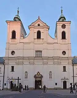 Die Kirche wurde in den 1640er Jahren im Stil der späten Lubliner Renaissance von Johann Canger aus Tirol und Giovanni Battista Falconi für die Franziskaner errichtet. Später ging das Kloster und die Kirche an die Piaristen.
