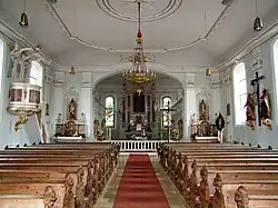 Der gesamte Kircheninnenraum ist klassizistisch beim Umbau von 1786 umgestaltet worden. Vorwiegend wurde die Farbe Weiß gewählt.