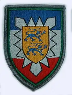 Das Verbandsabzeichen stellte die Verbindung zum Stationierungsraum her. Das Verbandsabzeichen ähnelte dem Wappen Schleswig-Holsteins. Die Schleswigschen Löwen symbolisierten den Landesteil Schleswig. Das Nesselblatt war Symbol für den Landesteil Holstein. Die Schildteilung entsprach der Flagge Schleswig-Holsteins. Der grüne Bord war typisch für alle Heimatschutzkommandos in der Heeresstruktur III. Grün war die Waffenfarbe der Jägertruppe, denn die Heimatschutzkommandos ähnelten im Kern Jägerbrigaden.