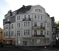 Das Gebäude ist ein fünfgeschossiges Eckhaus an der Einmündung der Lindenstraße in die Milsper Straße. An der Straßenecke ist der Bau, der Straßenführung folgend, abgerundet. Es besitzt reichhaltige Stuckverzierungen im Stil des späten Historismus, ein hohes, mit Ziegeln und Schiefer gedecktes Mansarddach, das von einem breiten Mittelgiebel mit mächtigen Stuckortgängen unterbrochen wird, zwei symmetrisch angeordnete Erker und Holzsprossenfenster. Das teilweise mit Schaufenstern versehene Erdgeschoss ist dunkel verputzt. Die Treppen im Haus haben 96 Treppenstufen. Die Eingangstür hat eine Oberlichtverzierung im Jugendstil.