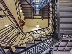 - Fotos von Treppenhäusern in Hamburgs Kontorhäusern, u. a. im Heine-Haus