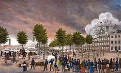 Der Standort, an dem das Heine-Haus steht, ist seit Mitte der 1820er Jahre mit dem Namen „Heine“ verbunden. Seit dieser Zeit wohnte und arbeitete hier der Bankier Salomon Heine. Am 7. Mai 1842 musste das Gebäude, das 1836 sein Schwiegersohn Adolph Halle[2] erworben hatte,[3] gesprengt werden, um eine weitere Ausbreitung des Großbrandes, der nahezu ein Drittel der Hamburger Innenstadt vernichtet hatte, zu verhindern. Auch die unmittelbar angrenzenden Gebäude waren betroffen: das Hotel „Alte Stadt London“ und „Streit's Hotel“ wurden ebenfalls gesprengt.[4]