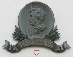 Darunter befand sich von 1908 bis ca. 1936/37[27] eine bronzene Gedenkplakette, geschaffen vom Bildhauer Hugo Berwald und gestiftet von einem belgischen Gönner (sie wurde am 13. Mai 1940 mit anderen Bronzegegenständen zur Verschrottung abtransportiert).[28]