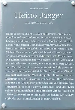 - ↑ Jaegers Studenten-Karteikarte an der HfBK ( des vom 12. Mai 2014 im Internet Archive) Info: Der Archivlink wurde automatisch eingesetzt und noch nicht geprüft. Bitte prüfe Original- und Archivlink gemäß Anleitung und entferne dann diesen Hinweis.