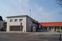 Das Bad liegt nördlich des Schlossgartens zwischen der Eugen-Kaiser-Straße und der Kinzig. Aufgrund der Nähe zum Fluss musste das Gebäude musste erhöht angelegt werden und so befindet sich das Schwimmbecken des Hallenbades drei Meter über dem Straßenniveau.