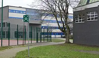 Zu den Schulgebäuden zählen das Hauptgebäude, der Unterstufentrakt, die Aula und seit 2019 ein kleinerer Anbau an das Hauptgebäude.[9] Auf dem Schulgelände sind zudem eine Turnhalle und ein Lehrschwimmbecken, für das 2020 Mittel aus dem EU-Regionalfonds für eine Sanierung bewilligt wurden.[10]
