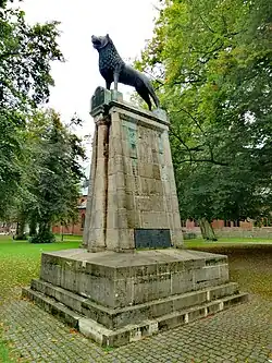 1975 spendete die Elfriede-Dräger-Gedächtnis-Stiftung in Person des Mäzens Heinrich Dräger im Jahr des Denkmalschutzes 30 Jahre nach Kriegsende eine seinerzeit umstrittene Kopie des zu jener Zeit völlig vergessenen ersten Denkmals. Die Stiftung ist ein Teil der Dräger-Stiftung,[3] Auf dem Domkirchhof, der anderen Seite des Doms, der Nordseite, des Doms, wurde die seinerzeit umstrittene Bronze-Kopie des Braunschweiger Löwen aufgestellt.[4]