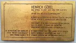 - ↑ Death of Henry Goebel. In: The Electrical World. Vol. XXII, No. 26, 16. Dezember 1893.