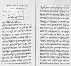- ↑ The Oconto Incandescent Lamp Case. II In: The Electrical World. Vol. XXII, No. 4, 22. Juli 1893, S. 57 und S. 68–71. Zitat: „All of the new testimony for the defense in this case, covering some 650 pages of the printed record, was given under oath and the witnesses were subjected to the most rigid cross examination. Not only was the defense not discredited thereby, but materially strengthened.“ Kreuzverhöre waren unüblich in Verfahren über einstweilige Verfügungen.