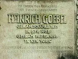 - ↑ Heinrich-Goebel-Feier in Springe am Deister. In: ETZ Elektrotechnische Zeitschrift – Organ des VDE. Nr. 41,10. Oktober 1929, S. 1492.