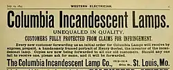 - ↑ The Columbia Incandescent Lamp Company Case. In: The Electrical World. Vol. XXI, No. 16, 22. April 1893, S. 294.