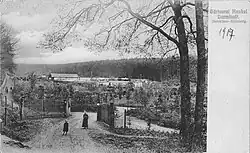 Der Umzug der Gärtnerei vom Herdweg 53 in die Roßdörfer Str. 199 ist in den Darmstädter Adreßbüchern durch die Ausgaben von 1904[31] und 1905[32] dokumentiert. Bereits im März 1902 wurde das insgesamt knapp 64000 m² große Areal im Bereich der damals zur Gemarkung Bessungen gehörigen Neuwiese für die Dauer von 30 Jahren gepachtet. Dabei betrug das jährliche Pachtgeld 1000 Mark.[33]