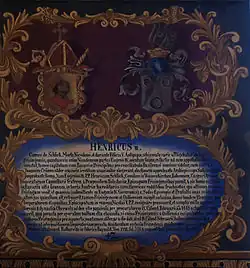 Am 21. August 1488 verzichtete Heinrich auf alle Ansprüche und bekam als Entschädigung tausend ungarische Dukaten und die lebenslange Nutzung der Herrschaft Oberwölz mit der Burg Rotenfels als Sitz.[4] Heinrich wurde nie zum Bischof geweiht und hatte seine Residenzstadt nie betreten; stattdessen regierte während seiner Amtszeit Johannes Grünwalder über das Hochstift Freising. Heinrichs genauer Sterbetag ist nicht bekannt, nach J. Sutner starb er noch 1448 in Oberwölz.[5]