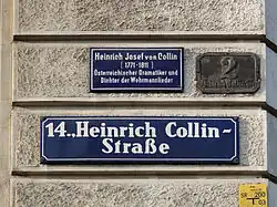 Straßentafeln der Heinrich Collin-Straße in Penzing