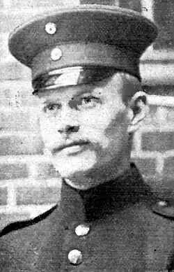 - Heinrich machte denselben Bildungsgang durch wie sein Bruder. Er besuchte die Universitäten in Freiburg und Berlin um Philologie und Geschichte zu studieren. Im August 1914 trat er als Freiwilliger in das Heimische Regiment. Als er den Offizierausbildungs-Kursus in Elsenborn absolviert hatte, wurde er am 22. März 1915[46] zum Leutnant befördert und dem Reserve-Infanterie-Regiment des 1. Hanseatischen Infanterie-Regiments zugeteilt. Von einer Verwundung im Februar 1916 geheilt, kehrte er an die Front zurück und nahm an den Kämpfen um Givenchy teil. An der Somme ist er gefallen. Ihm ist sowohl das Lübeckische Hanseatenkreuz als auch das Eiserne Kreuz 2. Klasse verliehen worden.[45]