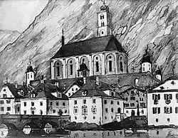 - Kirchentreppe, St. Leodegar im Hof, Luzern 1897 (Wettbewerb 1. Preis)