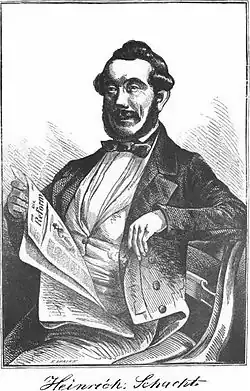 Heinrich Schacht war Sohn eines Schmiedemeisters. Er wäre gerne zur See gefahren, konnte sich jedoch keine Ausrüstung leisten.[1] Er absolvierte eine Schmiedelehre und arbeitete jahrelang als Schiffsschmied. Von 1848 an publizierte Schacht eigene Texte in der Hamburger Zeitung Die Reform des Verlegers Jacob Ferdinand Richter.[2][3] Die Zeitung galt als demokratisch eingestelltes Blatt, das vom Hamburger Kleinbürgertum gelesen wurde. Richter begann Schacht zu fördern und ermöglichte ihm ein Auskommen jenseits des Schmiedeberufes. Ab 1853 verdiente Schacht seinen Lebensunterhalt als Kolporteur (fliegender Buchhändler) und Gelegenheitsdichter in Hamburg.