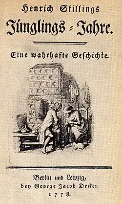 Stilling veröffentlichte den zweiten Teil seiner Autobiographie Heinrich Stillings Jünglingsjahre 1778, also direkt auf seinen erfolgreichen ersten Teil Heinrich Stillings Jugend (1777), den noch sein Studienfreund Johann Wolfgang von Goethe für ihn hatte drucken lassen. Auch der dritte Teil Heinrich Stillings Wanderschaft folgte noch 1778.