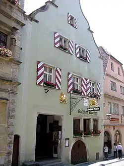 - ↑ Matthias Untermann: Handbuch der mittelalterlichen Architektur. Darmstadt 2009, S. 175; Markus Naser: Rothenburg im Spätmittelalter. In: Horst F. Rupp, Karl Borchardt (Hg.), Rothenburg ob der Tauber. Geschichte der Stadt und ihres Umlandes. Theiss, Darmstadt 2016, S. 82–135, hier S. 118.