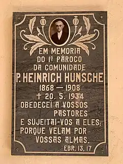 Gedenktafel für Heinrich Wilhelm Hunsche in der Kirche von Linha Nova