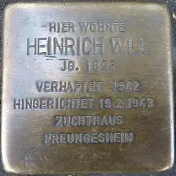 - Am 12. Februar 2009 wurden für Elisabeth und Heinrich Will vor dem Haus Friedrichstraße 8 in Gießen Stolpersteine durch den Kölner Künstler Gunter Demnig verlegt.