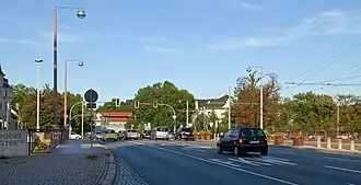 Sie verbindet das Stadtzentrum mit den westlich des Flusses gelegenen Stadtteilen Debschwitz und Heinrichsgrün und bildet zugleich die westliche Ausfallstraße der Stadt, da die Bundesstraße 2 hier die Elster überquert. An ihrem östlichen Rand bildet die Brücke mit den Straßen Am Sommerbad (B 2) aus nördlicher, Elsterdamm (B 92) aus südlicher und Heinrichstraße aus östlicher Richtung eine der größten Straßenkreuzungen der Stadt.
