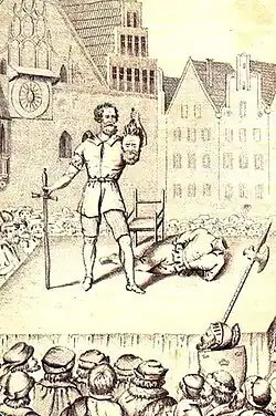 Die Stadt betrachtete ihn inzwischen als Diktator der Stadt, auch weil er sich im Amt zum Beispiel an Grundbesitz bereichert haben soll. Er wurde eingekerkert, gefoltert, zum Tode verurteilt und hingerichtet.[2]