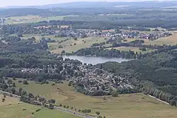 | Der Heisterberger Weiher (mit dem Rother Berg im Hintergrund) • Blick aus Westnordwest von Heisterberg aus | ||