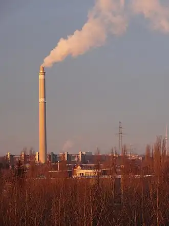 Da die DDR beim Bau des Kraftwerks bzw. der Müllverbrennungsanlage nicht über leistungsfähige Filtertechnik verfügte, wurden die praktisch ungefilterten Verbrennungsgase über einen 169 Meter hohen Schornstein abgeleitet, um sie so weiträumig zu verteilen. Ein zweiter gleich hoher Schornstein leitete die Rauchgase von sechs Heißwassererzeugern ab.