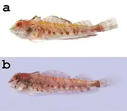- ↑ a b Ronald Fricke, Mark V. Erdmann: Helcogramma atauroensis, a new species of triplefin from Ataúro Island, Timor-Leste, eastern Indian Ocean (Teleostei: Tripterygiidae), Journal of the Ocean Science Foundation, 26, 34–45 (2017), urn:lsid:zoobank.org:pub:612DE10C-E89B-4C08-ADF9-598BC068B0AF doi:10.5281/zenodo.377034, Seite 35.