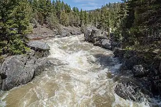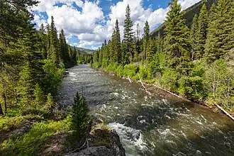 ![]() Der Fluss, gesehen von der Hellroaring Creek Bridge | ||