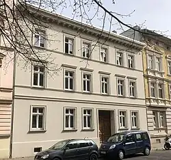 Das dreigeschossige verputzte Gebäude entstand in der Zeit um 1870. Der sechsachsige Bau ist schlicht im Stil des Spätklassizismus gestaltet. Die horizontale Gliederung der Fassade erfolgt durch profilierte Gesimse. Die Fensteröffnungen sind nur wenig verziert. Das vorkragende Dach ruht auf Konsolsteinen. Der Hauseingang ist asymmetrisch in der dritten Achse von rechts angeordnet.