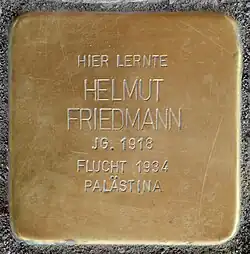 Im April 2018 wurde vor dem Friedrich-Wilhelm-Gymnasium in Köln im Rahmen des Kunst- und Erinnerungsprojektes des Kölner Künstlers Gunter Demnig ein Stolperstein verlegt, um an Helmut Friedmann zu erinnern.[9][10]