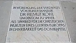 - ↑ Bronzebüste in Speyer erinnert an Helmut Kohl. Abgerufen am 3. April 2022.