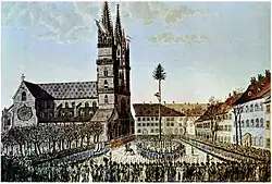 Die Revolution begann im Herrschaftsgebiet der Stadt Basel. In Liestal wurde am 17. Januar 1798 ein Freiheitsbaum aufgerichtet, und die Untertanen stürmten die Schlösser, die Sitze der städtischen Landvögte. Die städtische Regierung dankte ab, und am 5. Februar trat die Basler Nationalversammlung als erstes revolutionäres Parlament der Schweiz zusammen.