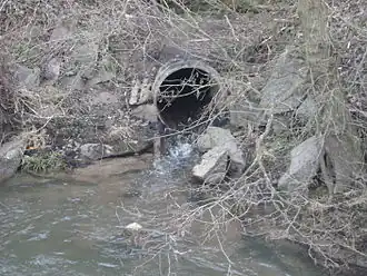 Er mündet schließlich am ehemaligen Feuerwehrhaus an der Bahnstrecke Kahl–Schöllkrippen auf einer Höhe von 153 m ü. NHN von links in die Kahl.