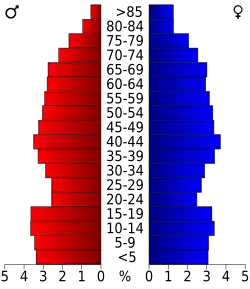24,4 Prozent der Bevölkerung war unter 18 Jahre alt, 7,6 Prozent zwischen 18 und 24, 25,0 Prozent zwischen 25 und 44, 24,8 Prozent zwischen 45 und 64 und 18,2 Prozent waren 65 Jahre alt oder älter. Das Medianalter betrug 40 Jahre. Auf 100 weibliche Personen kamen 96,2 männliche Personen und auf 100 Frauen im Alter von 18 Jahren oder darüber kamen 91,9 Männer.