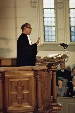 Hendrikus Berkhof predigt bei der Taufe von Prinz Maurits in der Grote Kerk von Apeldoorn (1968)