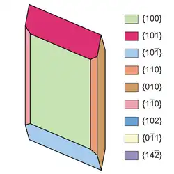 | Häufige Kristallflächen | {100}, {010}, {101}, {102}, {110}, {011}, {142} |