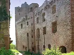 Das mit einer Grundfläche von 10,5 × 11 Metern relativ große, wohnturmähnliche Gebäude des östlichen Palas besteht aus drei, ursprünglich vier Stockwerken, Im Obergeschoss finden sich Reste eines Kamins. Die Baufuge zum südlich anschließenden gotischen Wohnbau ist deutlich zu sehen.