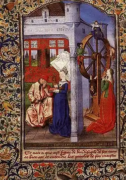 Der Hennin ([] frz., wohl von niederländisch henninck ‚Hahn‘[1]), auch Flandrische oder Burgundische Haube, war in fast ganz Europa zwischen 1385 und 1483 eine Haube für Frauen in spitzer oder stumpfer Kegelform. Er konnte mit einem langen Schleier, Flinder genannt, dekoriert sein.[2]