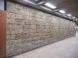 Das Wandbild Les enfants dans la ville („Die Kinder in der Stadt“) ziert die östliche Verteilerebene. Als Beitrag zum Internationalen Jahr des Kindes gab die Sport- und Freizeitabteilung der Stadtverwaltung ein Kunstwerk in Auftrag. 330 Montrealer Schulkinder gestalteten aus Knetmasse je ein Bild, zu den Themen Gebäude, Menschen, Parks und Verkehr. Die Formen wurden danach mit Beton ausgegossen und zu einem 11,1 m breiten und 2,9 m hohen Wandrelief zusammengesetzt.[5]