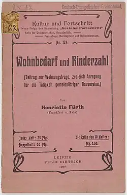 Henriette Fürth galt als eine Vertreterin der proletarischen, an der SPD orientierten Frauenbewegung.[2] Dabei hatte sie sich bereits 1896 als Gegenspielerin Clara Zetkins positioniert, indem sie sich gegen die prinzipielle Trennung von bürgerlicher und proletarischer Frauenbewegung aussprach.