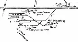 Die Industriebetriebe auf der Südseite der Lützner Straße, darunter die 1873 gegründete Tapetenfabrik Langhammer und Söhne, hatten auf ihrer Rückseite Gleisanschlüsse zum Plagwitzer Industriebahnhof. Die Anschlüsse gehörte zusammen mit der öffentlichen Ladestelle III zu den 37 Industrieanschlüssen, die der Industriepionier Carl Heine bauen ließ. Die Ladestelle und Anschlussgleise wurden noch bis in die frühen 1990er Jahre bedient, danach verfiel das Areal.