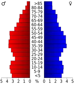 24,2 Prozent der Bevölkerung waren unter 18 Jahre alt, 7,5 Prozent zwischen 18 und 24, 27,8 Prozent zwischen 25 und 44 Jahre. 24,8 Prozent zwischen 45 und 64 und 15,7 Prozent waren 65 Jahre alt oder älter. Das Durchschnittsalter betrug 39 Jahre. Auf 100 weibliche Personen kamen 93,2 männliche Personen. Auf 100 Frauen im Alter von 18 Jahren und darüber kamen 90,2 Männer.