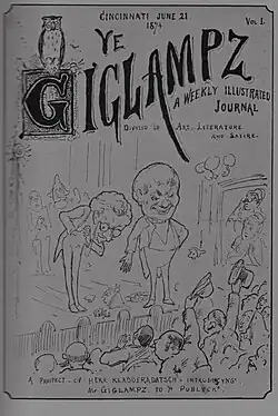 - ↑ Ye Giglampz: a weekly illustrated journal devoted to art, literature and satire. Vol. I, no. 1. June 21, 1874. Cincinnati. [Reprint: Cincinnati, 1963] (Digitalisat).